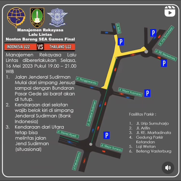 Selenggarakan Nonton Bareng Timnas U-22 Vs Timnas Thailand, Dishub Solo Adakan Rekayasa Lalu Lintas Di Jalan Jendral Sudirman